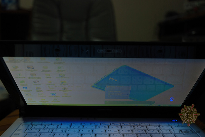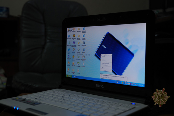 เปิดฝาออกมา พบว่าจอขนาด 10.1 นิ้วนั้นเป็น 16:9 format ความกว้าง 1024pixel ครับ เพียงพอสำหรับการใช้งานอินเตอร์เน็ททั่วไปแน่นอน ดีไซน์ส่วนใหญ่ ยังคงเหมือนๆกับ Netbook ทั่วไปอยู่ครับ
