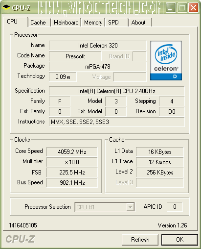 Celeron® D 320 (2.4GHz) @ 4GHz+ แรงทะลุราคา!!