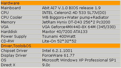 นี่ครับโฉมหน้าSystemราคาถูกที่อยากแรงของผมCeleron2.4D+GF4MX440-8X-64MB เพื่อความแรงแบบสุดขีดจับCeleron2.4Dเอาน้ำลูบดับร้อนซะเลยด้วยบล็อคBiggoro สำหรับSocket462ด้วยวิธีใหม่ ใช้เข็มขัดพลาสติกรัดบล็อคติดกับตัวล็อคซิงก์เดิมเลยครับ ใช้ได้ผลเหมือนกัน ไม่ต้องซื้อบล็อคหรือทำฝาบล็อคใหม่ ประหยัดกันสุดๆครับงานนี้ ส่วนสภาพจะออกมาเป็นยังไง ไปดูภาพกันเลยครับ