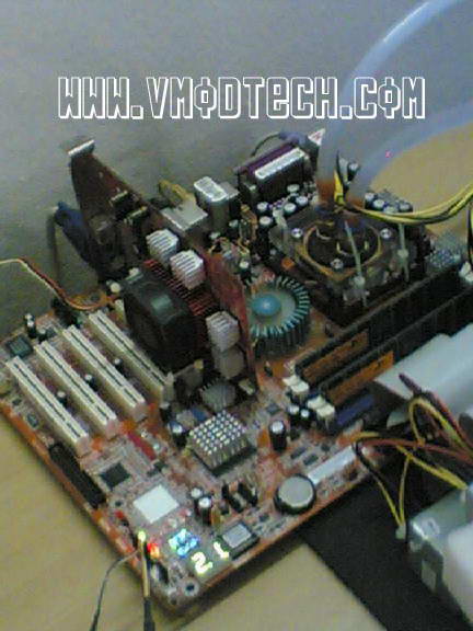 เห็นการ์ดแล้วอย่าเข้าใจผิดว่าเป็นR9800SEนะครับ GF4MX440 64 MB ต่างหากครับ อิอิ ไม่มีเงินซื้อใหม่ครับ เลยติดซิงก์กับพัดลมใหม่ ช่วยระบายความร้อนแบบอนาถา แต่ก็ได้ผลครับ ลากCORE/MEM ไปเสถียรที่345/330 สบายๆครับ