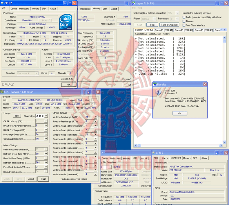 Intel Core i7 920 @ 4,237MHz (Turbo Mode) Bclk202MHz SuperPI32M 8Threads Stable!!!