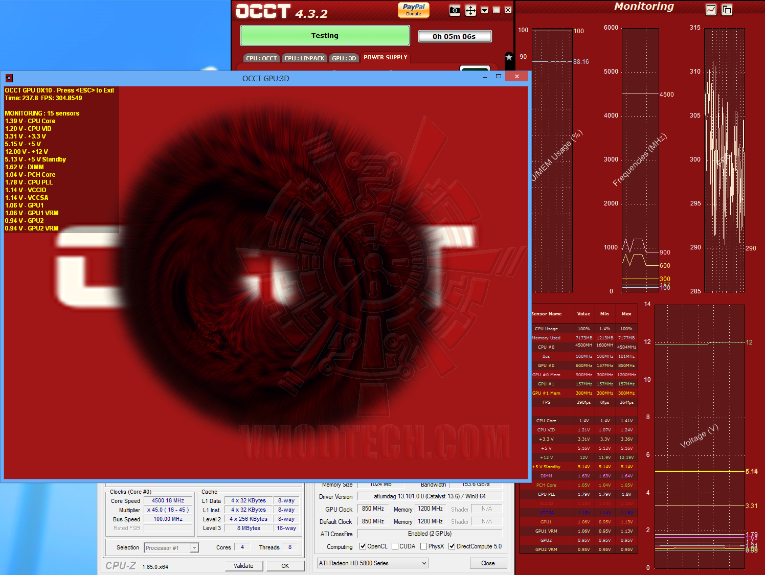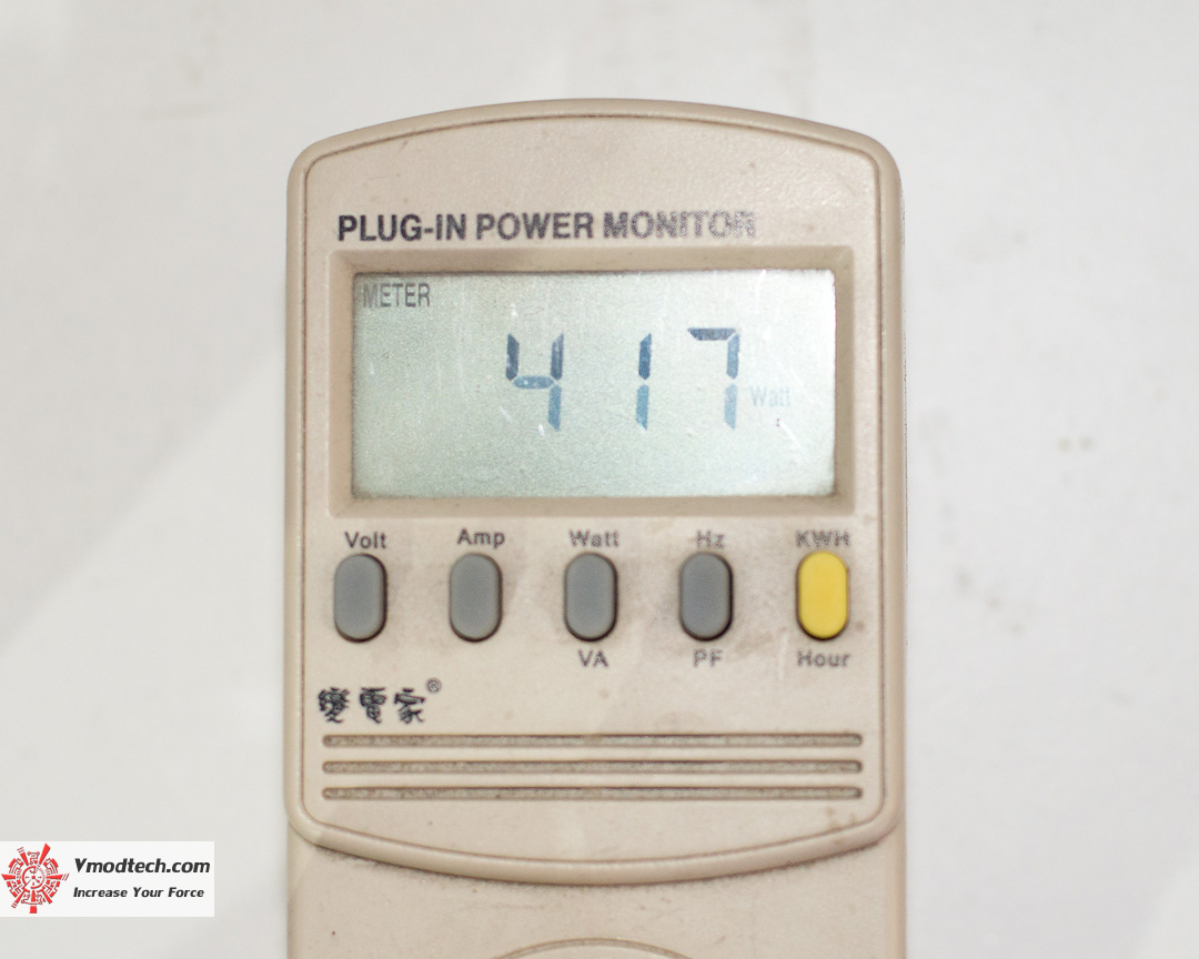 ระบบดึงกำลังไฟจากปลั๊กไฟบ้านเต็มที่ ที่ประมาณ 417 วัตต์ตอน Full Load ด้วย OCCT