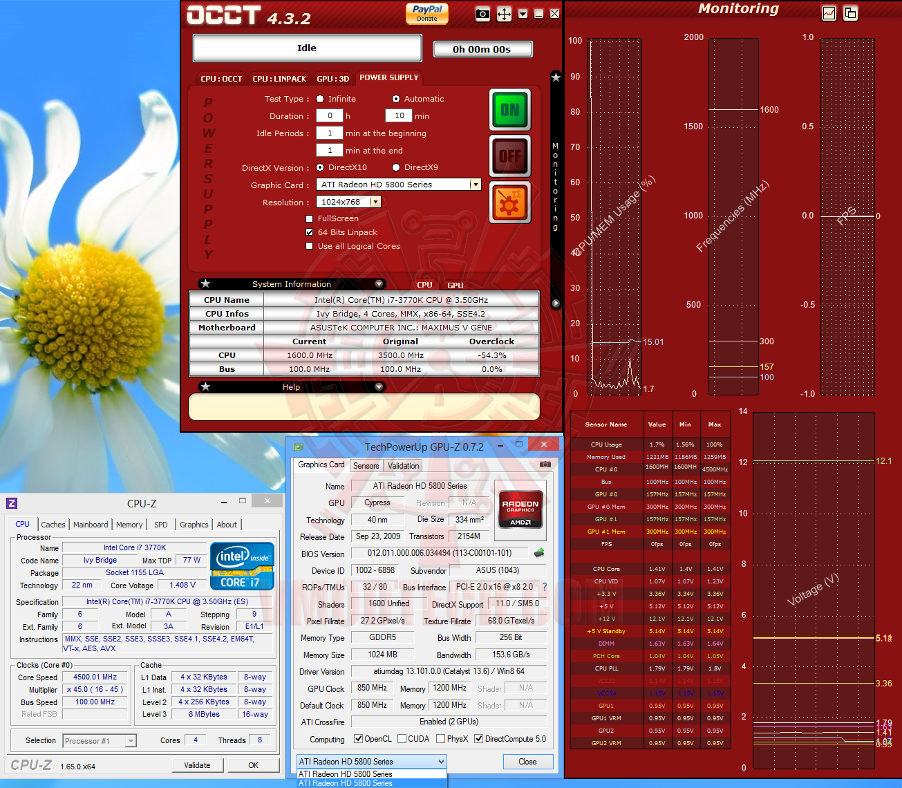 วันนี้จะ ใช้ CPU I7 3770K ครับ Overclock ไปที่ 4.5 GHz ใช้ไฟเลี้ยงเกินขนาดไปที่ 1.4 V ครับ ต่อ กราฟิกการ์ด HD 5870 crossfire