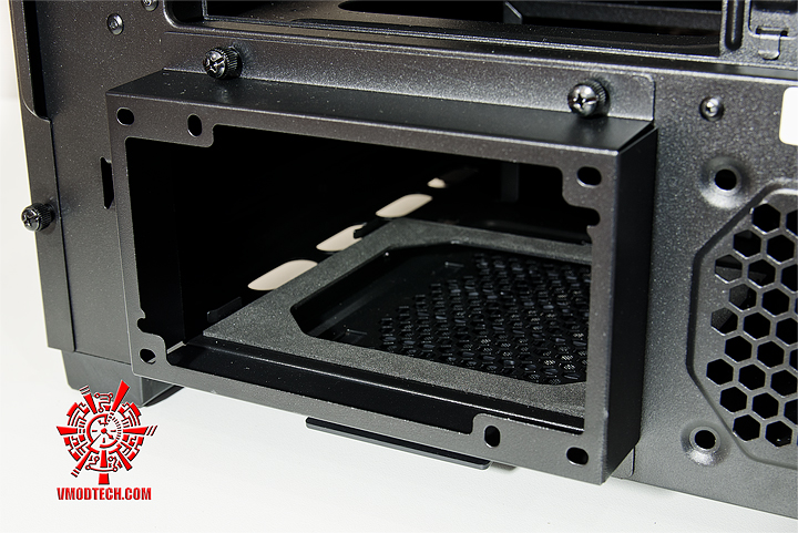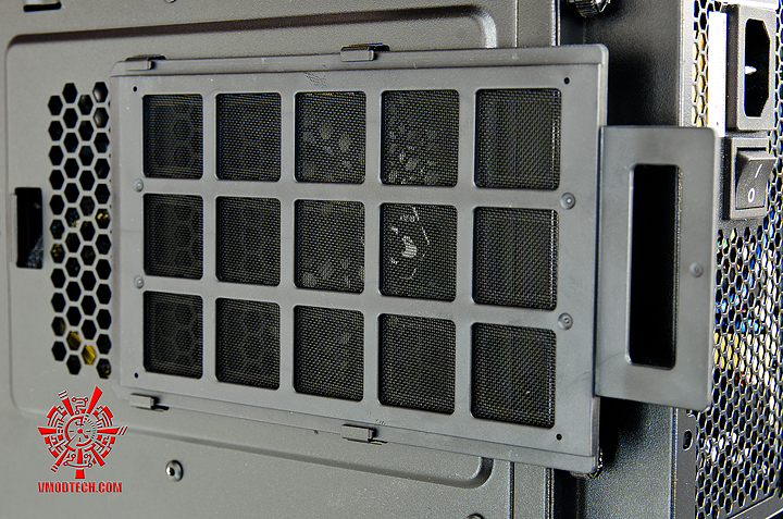 ด้านล่าง ตรง PSU มีกับดักเกรียน เอ๊ย!!! ไม่ใช้ๆ ตะแกรงดักฝุ่นครับ ถอดออกเป่าทำความสะอาดได้ง่ายๆครับ คูลเลอร์มาสเตอร์เค้าใส่ใจในรายละเอียดจริงๆครับ