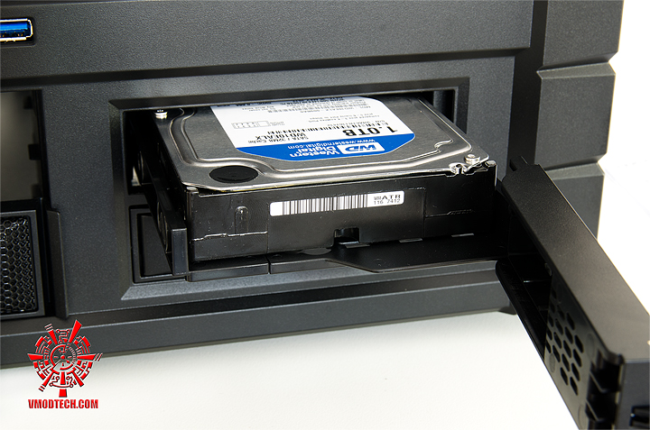 ขยับมามองทางด้านล่างขวามือ ของ Front View ครับ Drive Bays 3.5″ สำหรับใส่ ฮาร์ดดิส 3.5 นิ้ว ได้ 2 ลูกครับ ขาบิทอาจมีบ่น ขี้งกจัง ไม่ต้องบ่นครับ มันเป็น Drive Bays 3.5″ แบบ X-Docking Slots (External SATA HDD docking) ครับ คือสามารถเปลี่ยน ฮาร์ดดิสตัวเก่งได้ง่ายๆโดยไม่ต้องเปิดฝาเคสกันเลย จับใส่สล็อต แล้วยัดโครม!!!! แมนๆกันเลยครับ ลูกไหนเต็มจับเปลี่ยนใหม่กันง่ายๆ อย่างงี้เพื่อนมาบ้าน สบายเลยครับ พกฮาร์ดดิสมา 1 เทลาไบค์ เอาหนังคูณกลับบ้านไปเต็มลูกเลยครับ