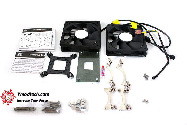 อุปกรณ์ภายในกล่องให้มากันแบบครบครันทั้งขาล๊อกซ๊อกเก็ตต่างๆ ไม่ว่าจะเป็น Intel Socket LGA2011 , 1136 , 1156 , 1155 , 775 , 1150 ส่วนของ AMD Socket FM1 , FM2 , AM3 , AM3+ , AM2+ , AM2 อ้าวใส่ได้ทุกรุ่นทุกซ๊อกเก็ตทั้งสองยี่ห้อเลยนี่ครับ โอ้แจ่มจริงๆ อุปกรณ์ตัวอื่นๆก็มีพัดลม 12CM พร้อมบล๊อกยางกันกระแทก , ซิลิโคนระบายความร้อน , น๊อตยึด , คู่มือการติดตั้ง , สายไฟต่อกับพัดลม , ประมาณนี้ครับ