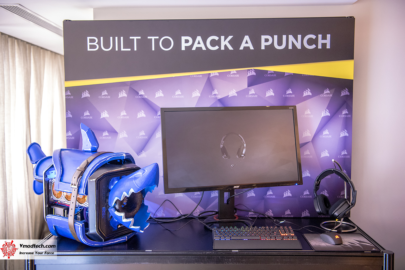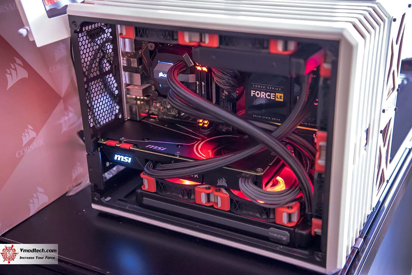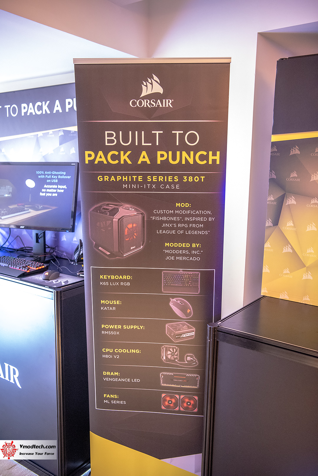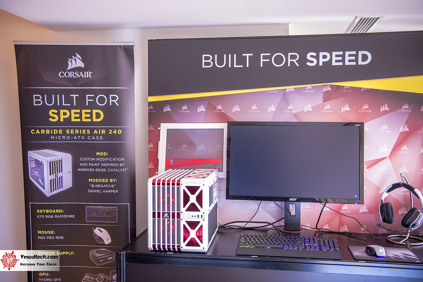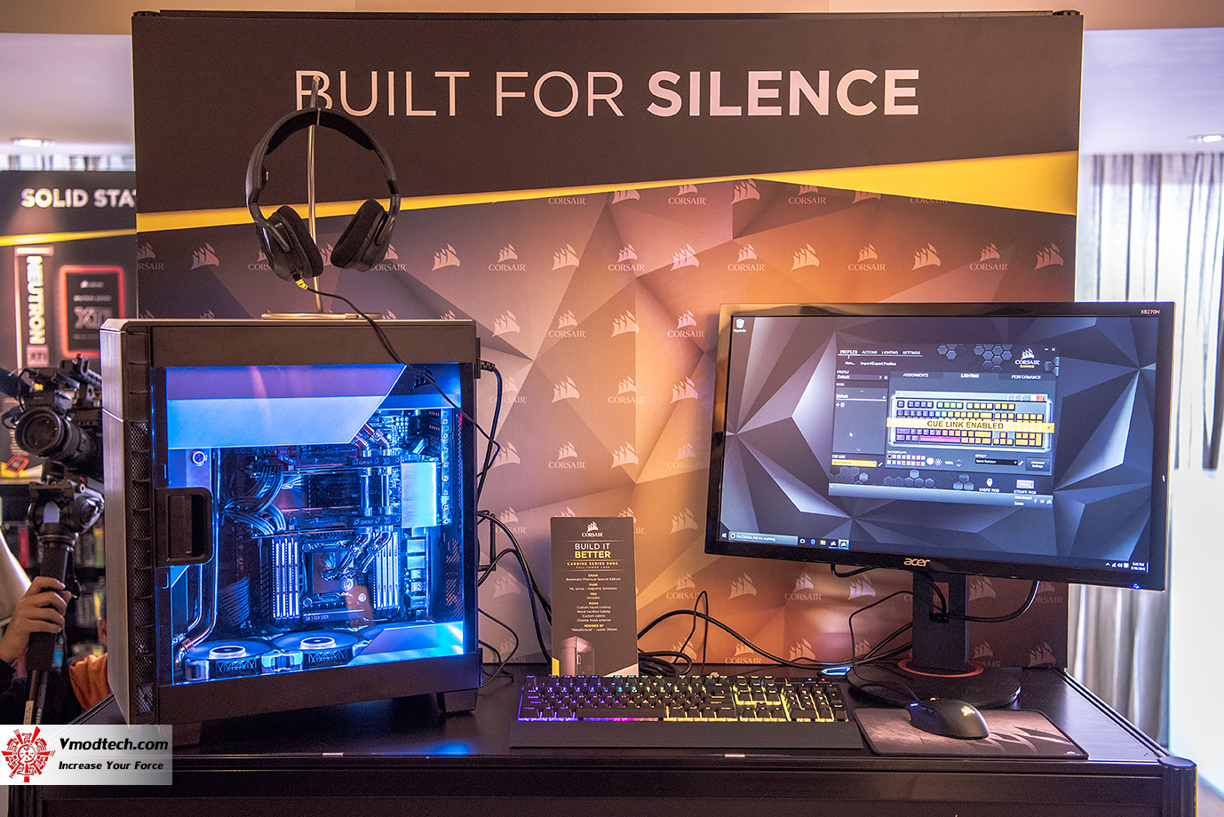 เดินเข้าประตูไปก็จะเจอเคสของทาง CORSAIR ที่ถูกตกแต่งด้วยชุดน้ำจัดเต็มอย่างงดงามนะครับ