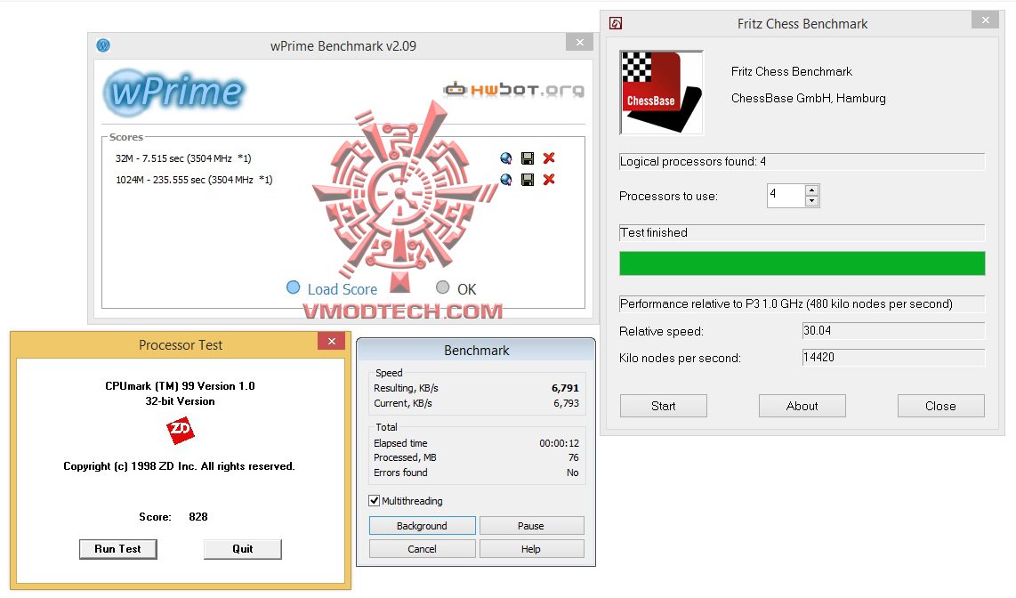 Fritz Chess Benchmark , Winrar , wPrime Benchmark v2.09