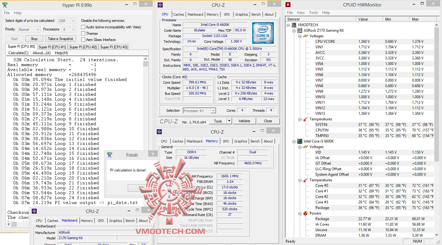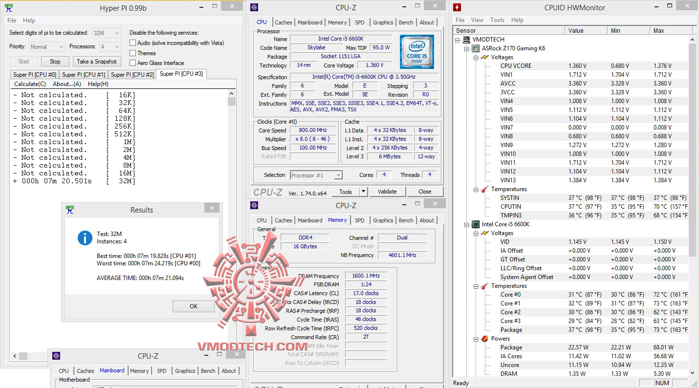 SuperPI1MB จบไปที่ 7.954นาที , 32MB จบไป7นาที 24.219วินาที แรงเยี่ยมครับ HyperPi 32MB ก็ผ่านทั้งหมดที่ 7นาทีต้นๆครับ