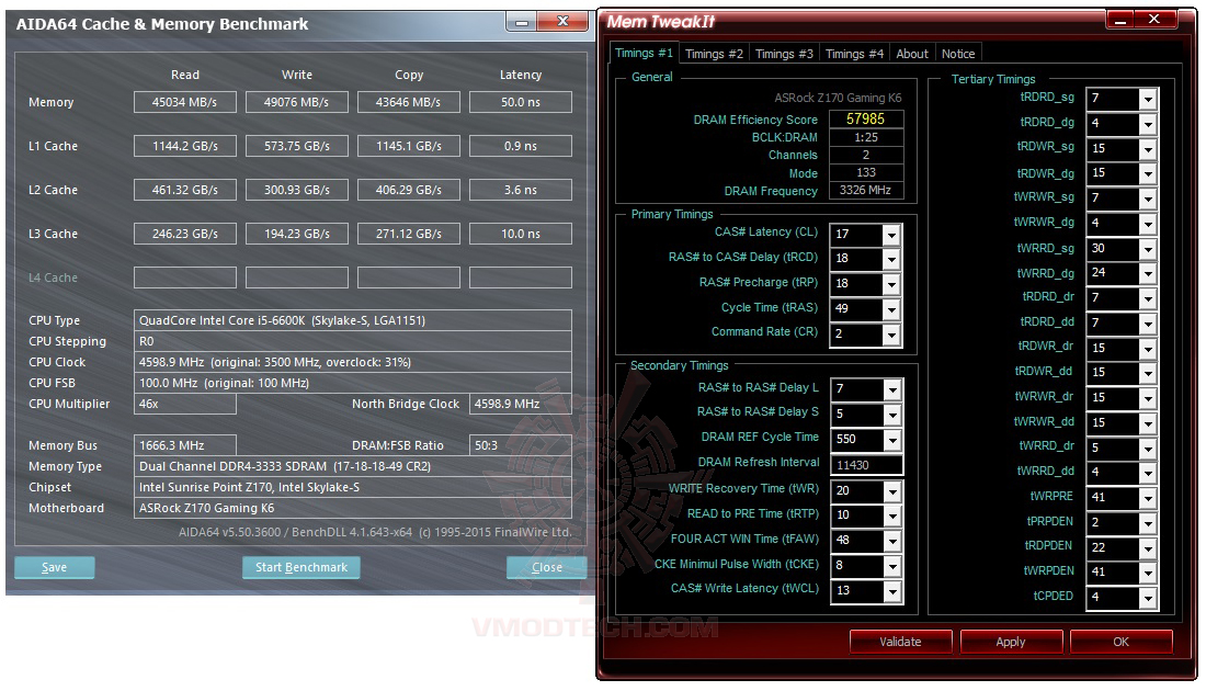 DDR3 3334MHz 17-18-18-49-550 2T 1.38V