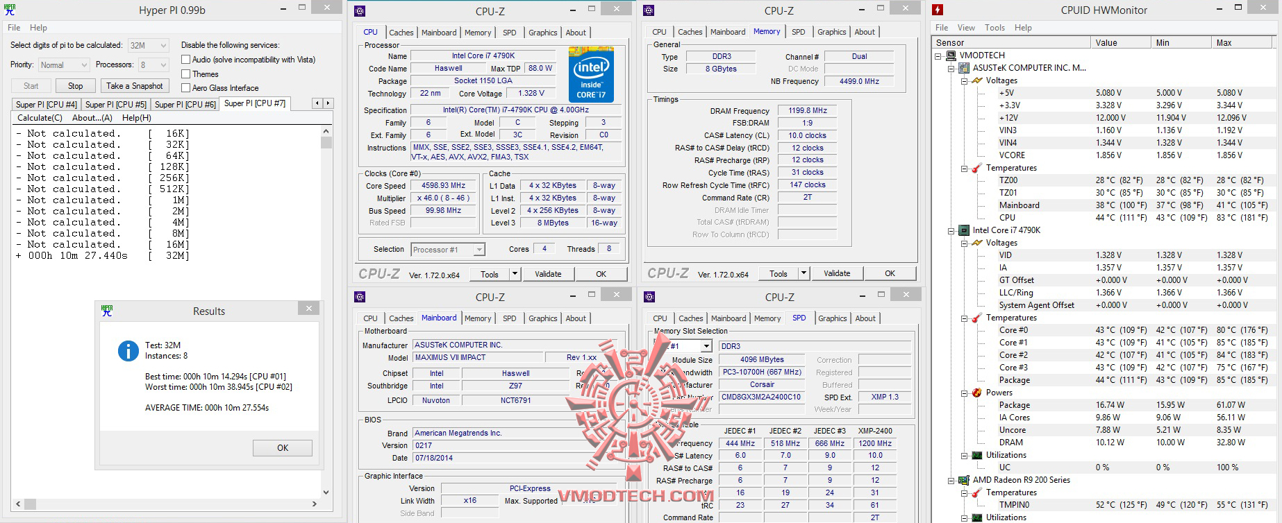 สำหรับชุด ทดสอบ SuperPI1MBจบไปที่ 7.816นาที , 32MB จบไป6นาที 50.017วินาที แรงใช้ได้ครับ ส่วน HyperPI32MB ก็ผ่านหมดอยู่ที่ 10นาทีต้นๆเท่านั้นครับ แรงแบบสุดๆจริง สำหรับ CORSAIR Dominator Platinum Series