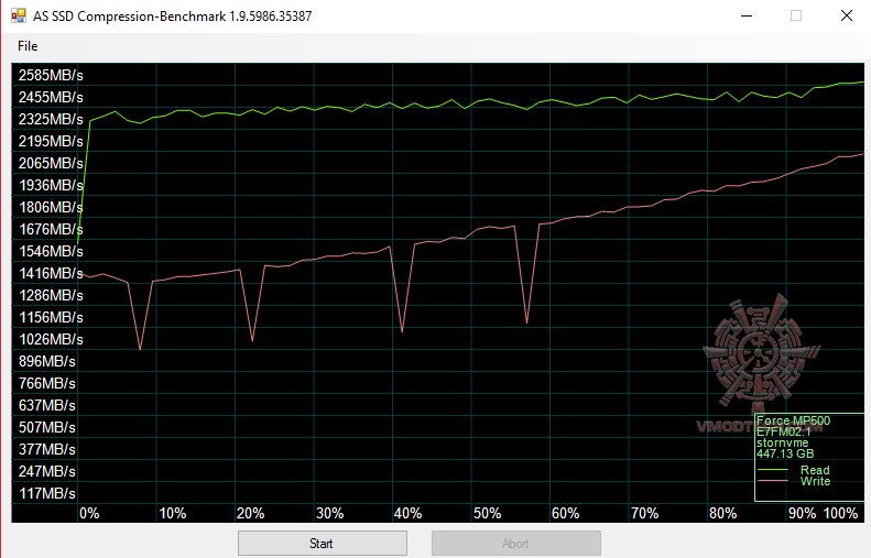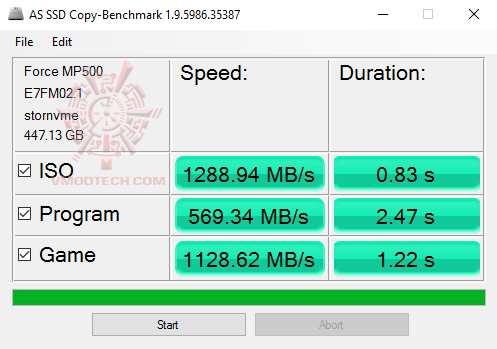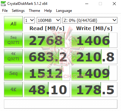 ประสิทธิภาพ ของการอ่านจาก CDM นั้นถือว่าสูงมากครับในระดับ 2770 MB/s โดยเฉลี่ย และด้านการเขียนนั้นอยู่ที่ 1400 MB/s เลยครับ
