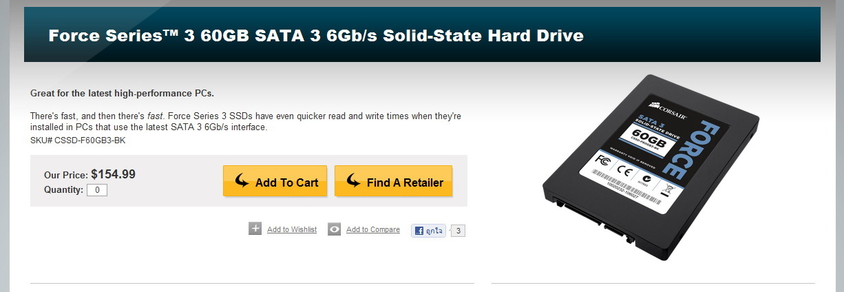 เมื่อชมจากสเปคแล้ว CORSAIR FORCE3 SSD 60GB SATA III ท่าทางดีครับน่าจะเร็วน่ะเนี่ย คอยติดตามผลการทดสอบกันครับ