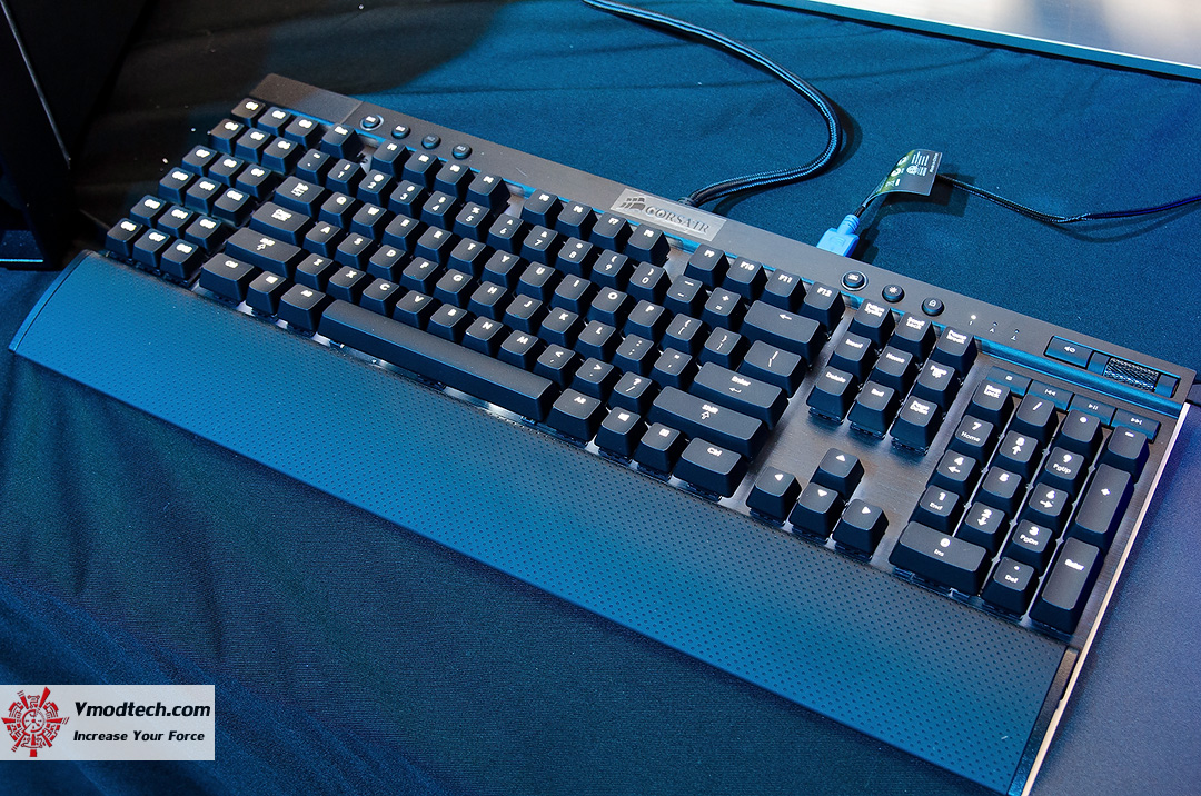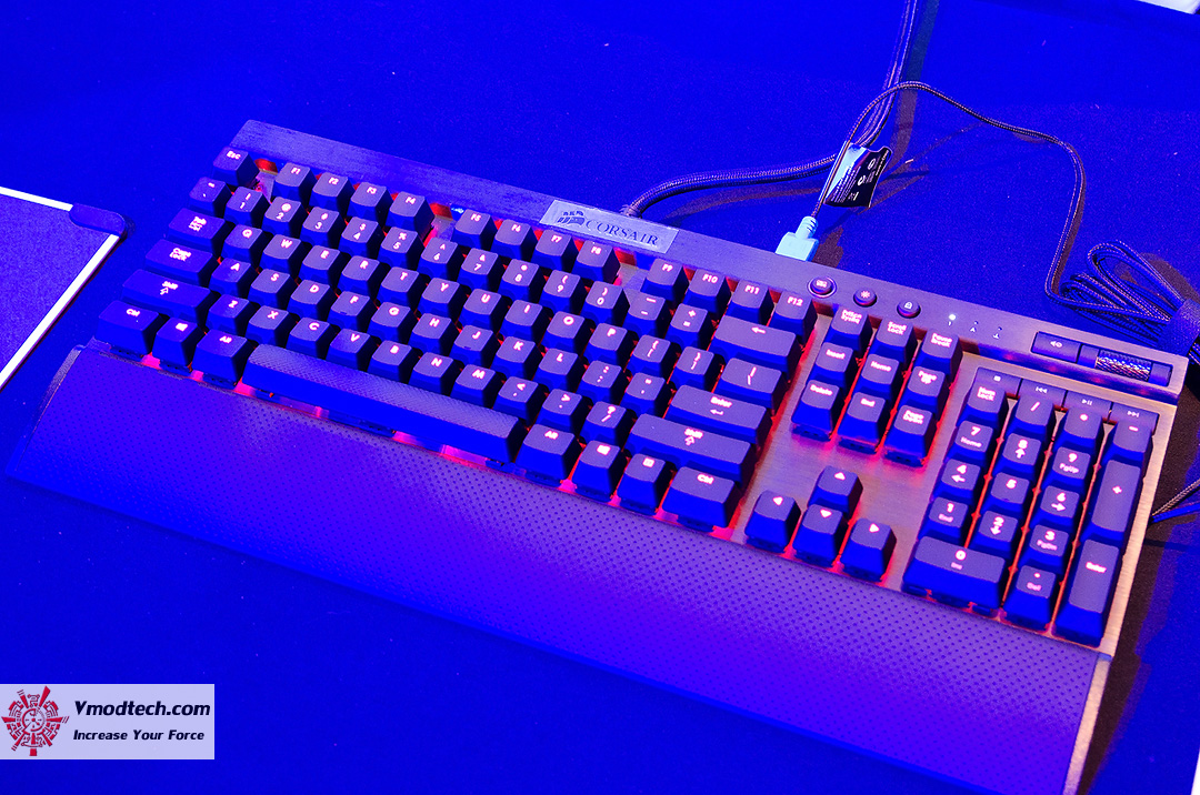 Keyboard Corsair K70 สวยๆครับ จริงๆเป็นสีดำครับ แต่โดนแสงไฟบรรยากาศภายในงานย้อมเป็นสีม่วงอมน้ำเงินก็สวยไปอีกแบบ