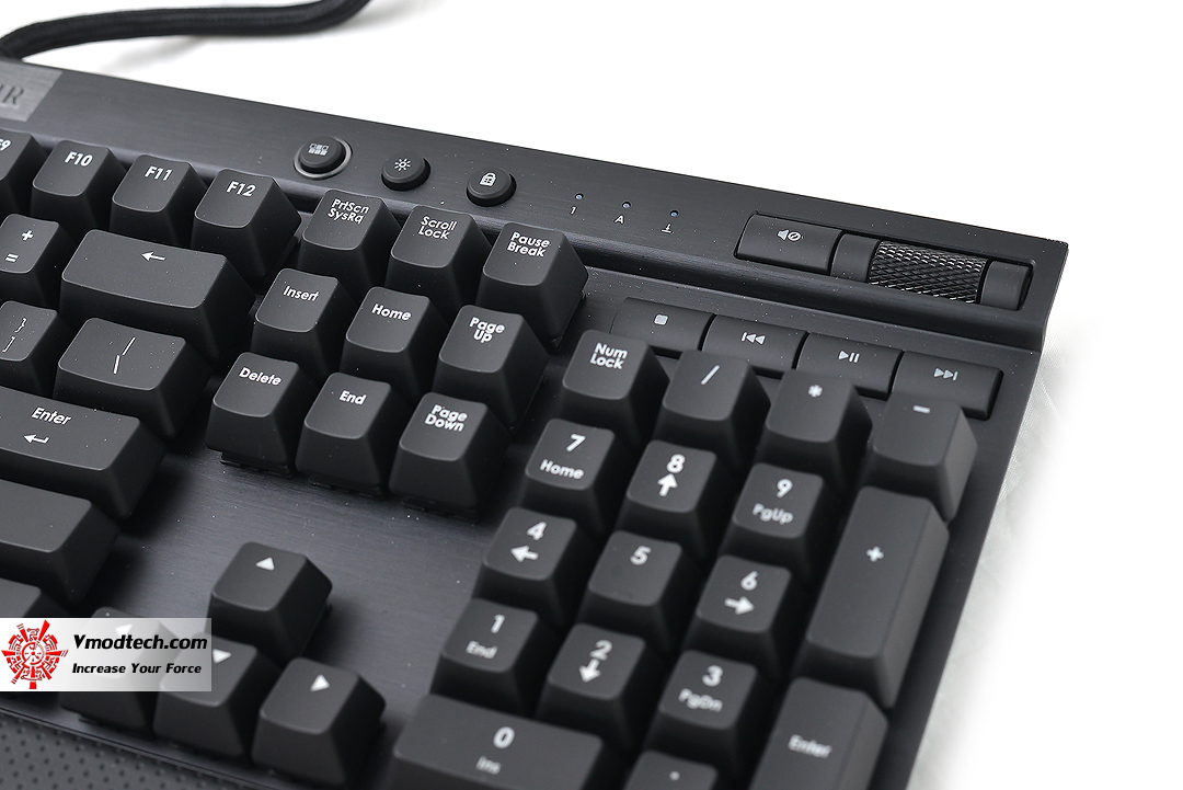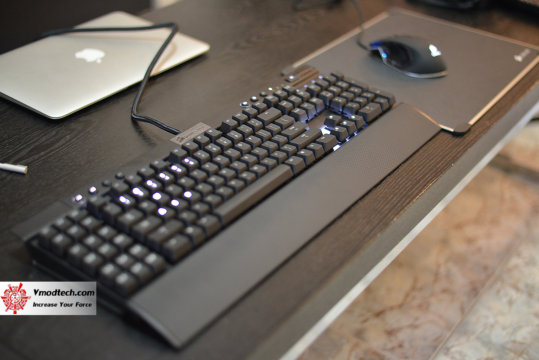 ส่วนตัวผมนะครับ ผมรู้สึกชอบกับการออกแบบที่เป็นเอกลักษณ์ของ Corsair มาก จริงๆผมเริ่มเบื่อๆกับภาพของ Mechanical Keyboard ที่เป็นแบบมาตรฐานซึ่งดูมันแข็งๆทื่อนี้มานานแล้วครับ รวมถึงลุคของคีย์บอร์ดบางแบรนด์ที่ทำออกมากี่รุ่นก็ยังคงอนุรักษ์นิยม หลายๆคนอาจจะชอบแต่หลายๆคนอาจจะรู้สึกเบื่อก็เป็นได้ แต่ไม่ครับ Corsair Vengeance K95 นั้นออกแบบมาได้อย่างสวยงาม โครงสร้างที่ทำมาจากอลูมิเนียมปัดแสดงลวดลายบนตัวได้สวยงามจริงๆครับ และก็ไม่ได้ทำมาเป็นกล่องเหลี่ยมๆแข็งๆเหมือนแบรนด์อื่นด้วย ปาล์มเรสก็หนึบและนุ่มนวลดีทีเดียว เมื่อก่อนผมไม่ค่อยชอบติดที่พักข้อมือแต่พอได้ทดลอง Corsair Vengeance K95 ก็ทำให้ผมรู้ถึงประโยชน์ของมันได้พอควรเลยครับกับความสบายที่ได้เพิ่มจากจุดนี้