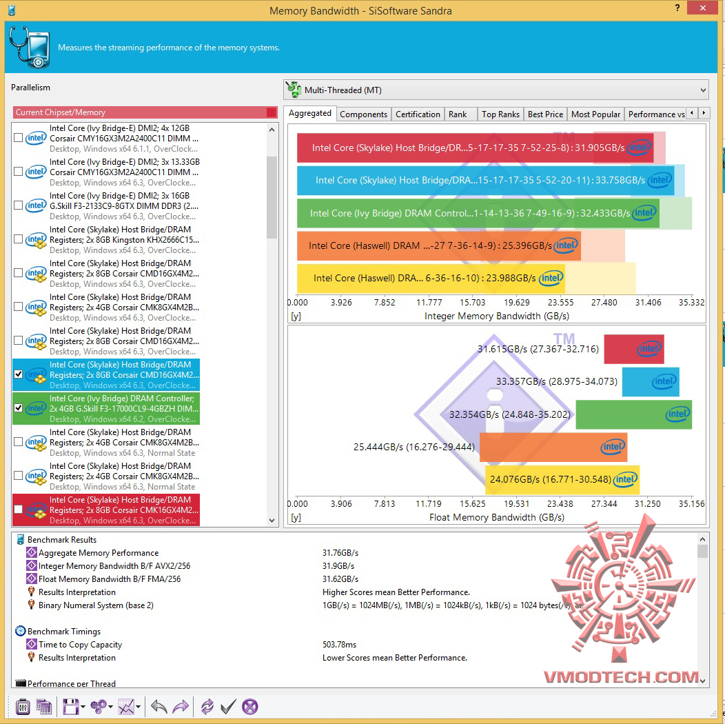ค่า Memory Read, Write ก็ทำออกมาได้ดีครับอยู่ที่ Read 43016MB/s และ Write 44994MB/s ความแรงก็ขยับขึ้นมาตามบัสที่สูงขึ้นเล็กน้อยครับ