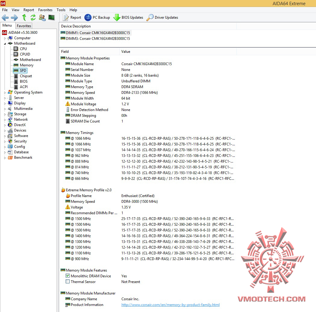 ตัวแรมมีสเปค DDR4 บัส 3000Mhz CL 15-17-17-35 ความจุ 16GB ไฟเลี้ยง 1.2v ครับ รองรับการใช้งาน XMP 2.0 คือกดเรียกใช้ตัวแรมก็จะวิ่งบัส 3000Mhz ตามสเปคเลยครับ