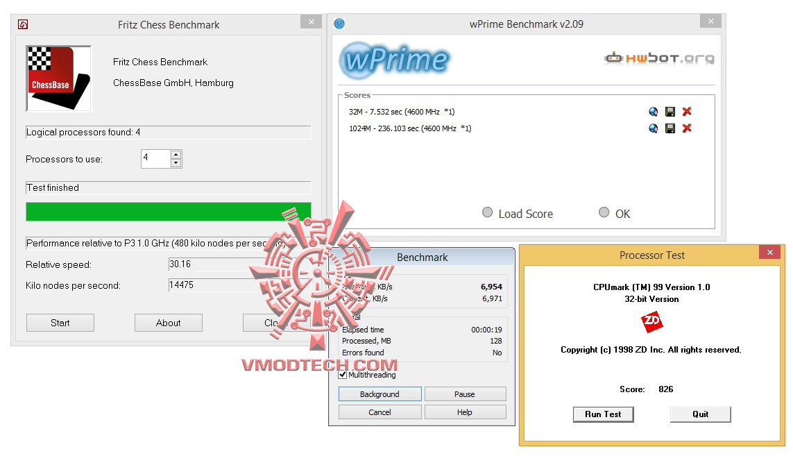 Fritz Chess Benchmark , Winrar , wPrime Benchmark v2.09