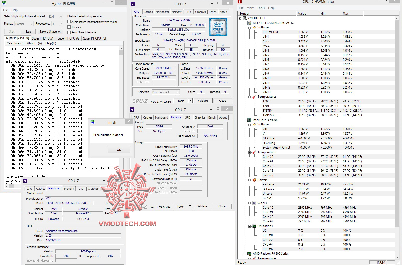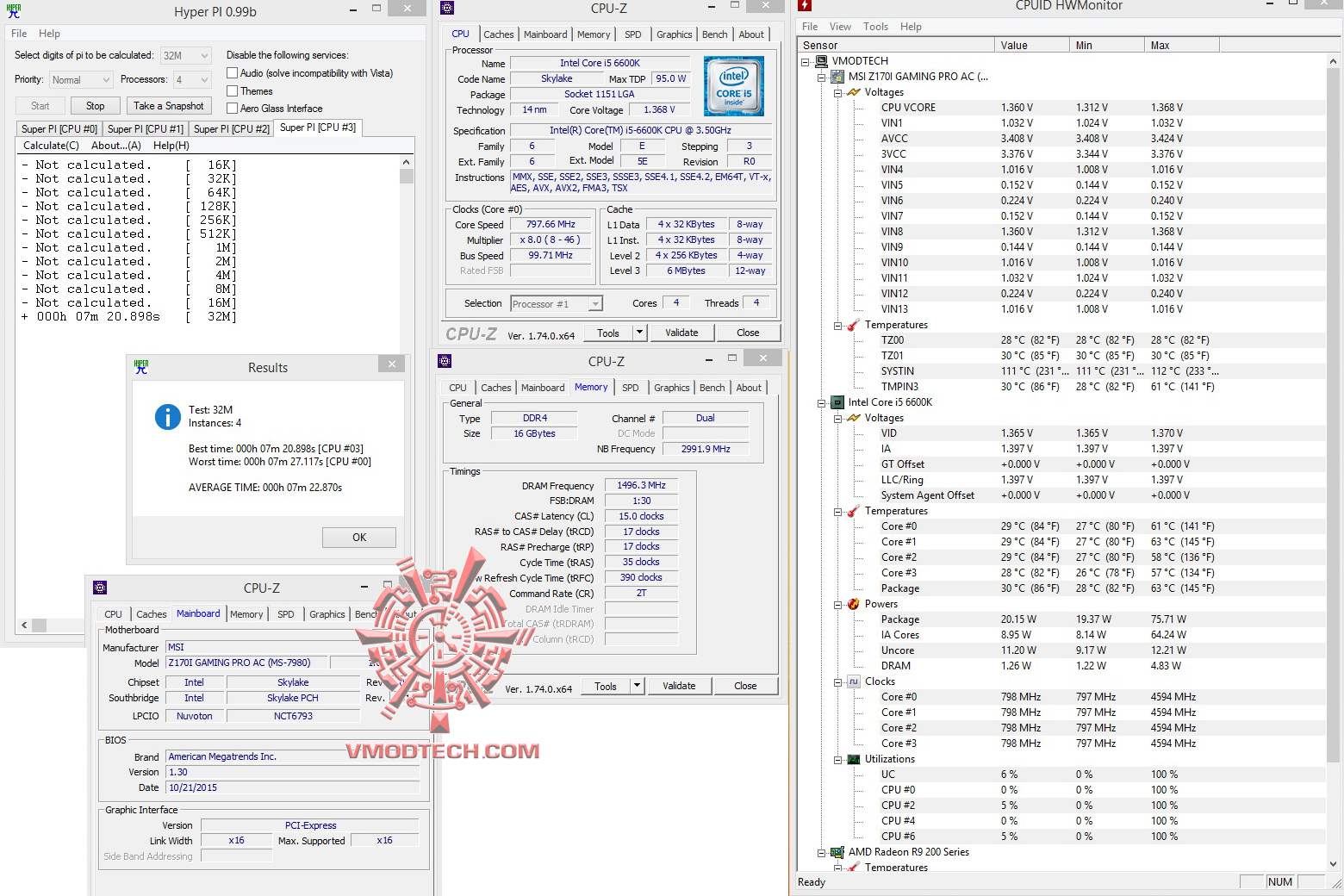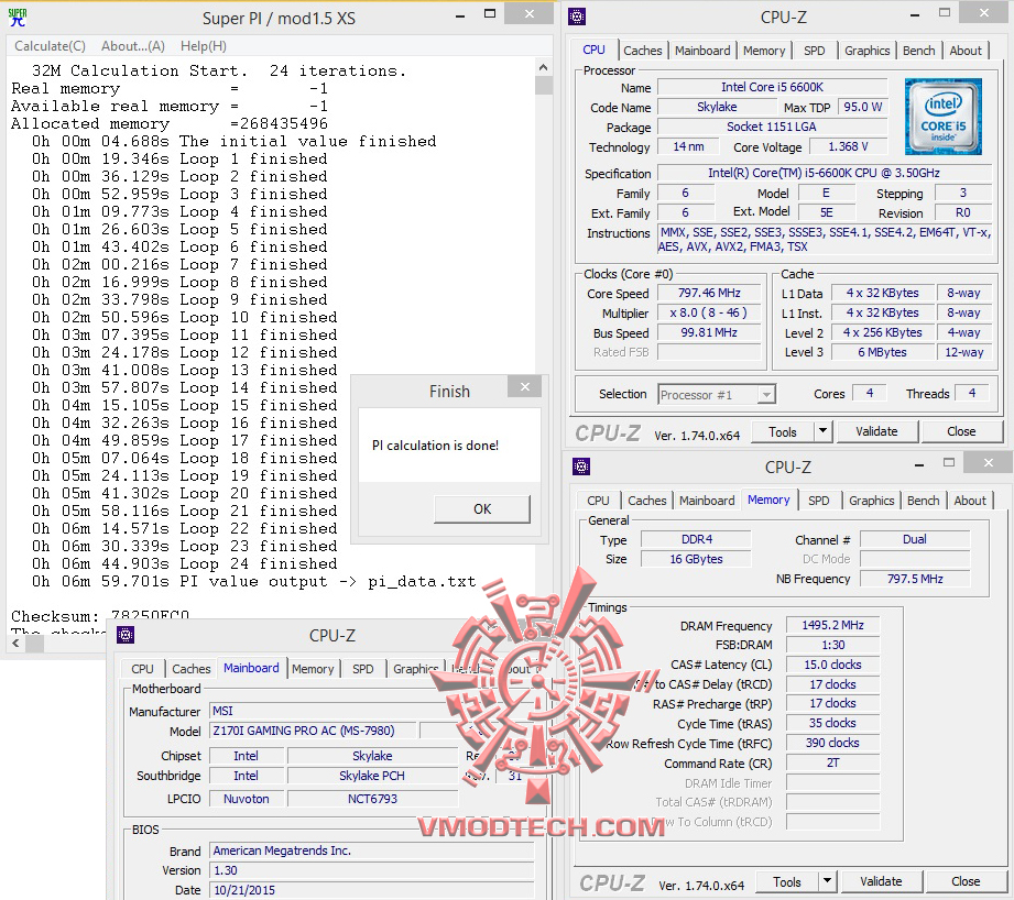 สำหรับชุด ทดสอบ SuperPI1MB จบไปที่ 7.938นาที , 32MB จบไป6นาที 59.701นาที แรงดีเลยครับ ส่วน HyperPI32MB ก็ผ่านหมดอยู่ที่ 7วินาทีครับ กับสเปคเดิมๆที่เรียกใช้งานค่า XMP บัส 3000Mhz แรงโอเคเลยครับ