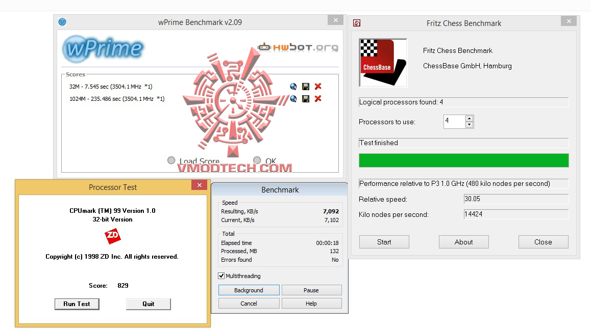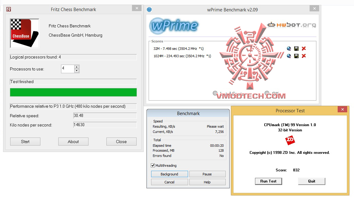 Fritz Chess Benchmark , Winrar , wPrime Benchmark v2.09