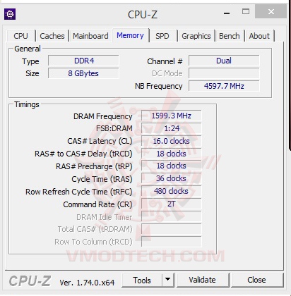 ตัวแรมมีสเปค DDR4 บัส 3200Mhz CL 16-18-18-36 ความจุ 8GB ไฟเลี้ยง 1.35v ครับ