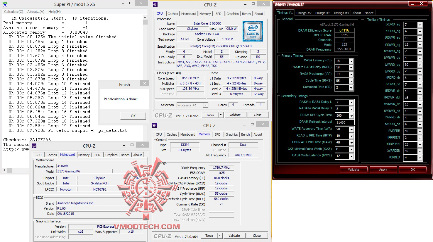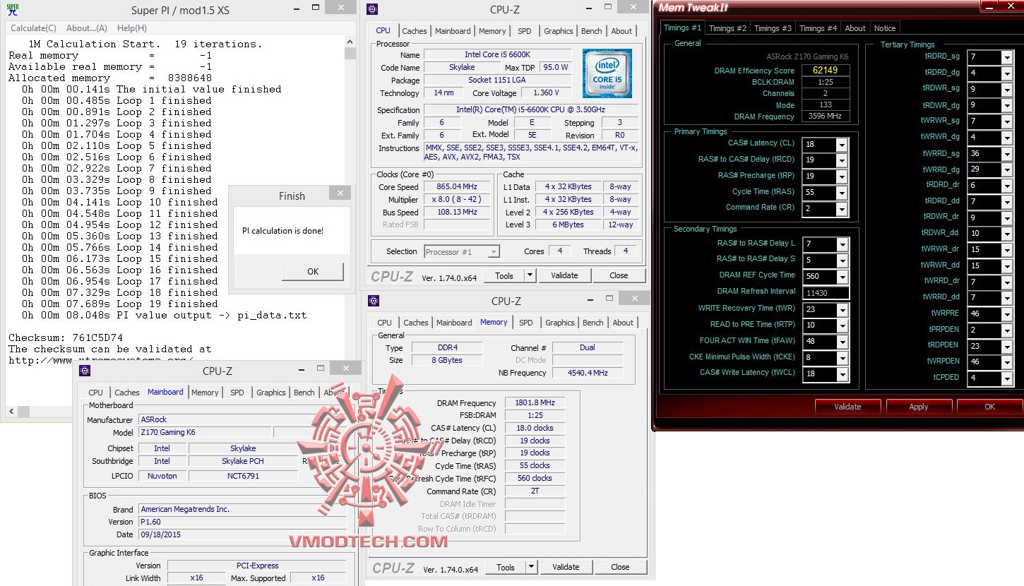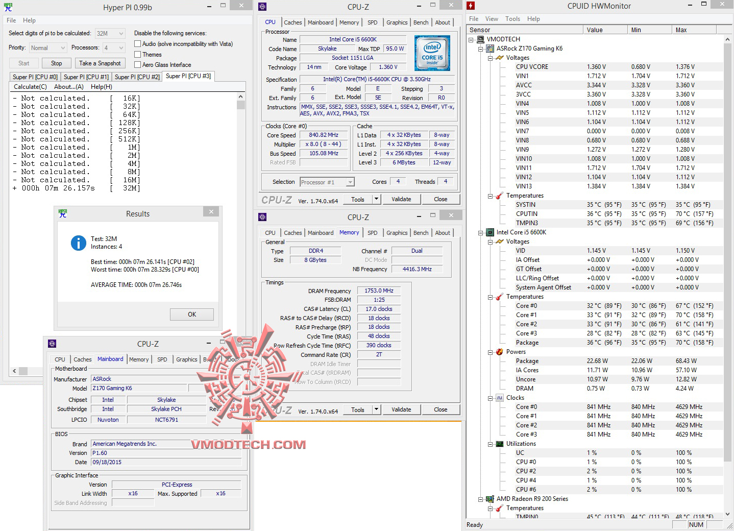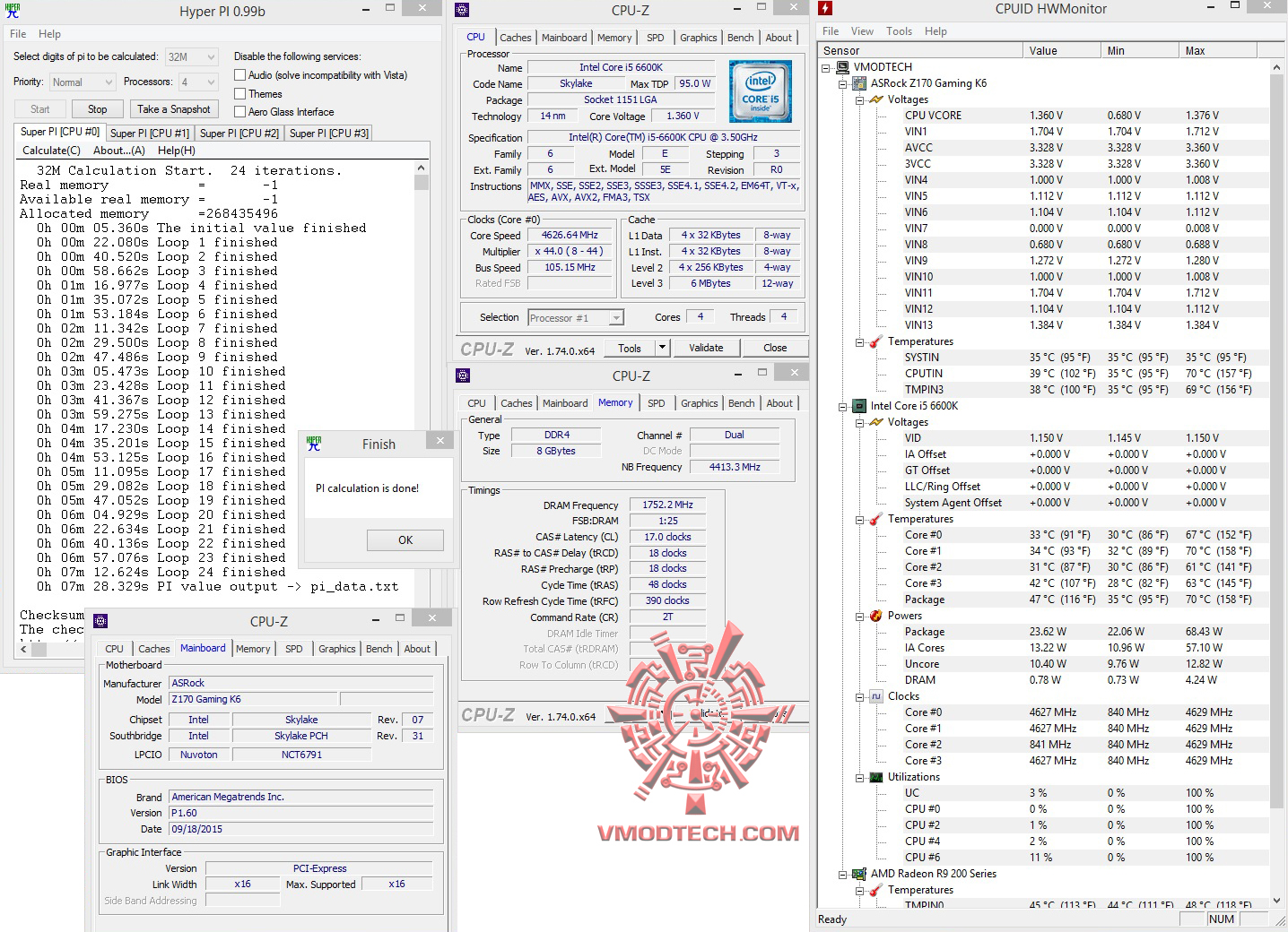 SuperPI1MB จบไปที่ 7.891นาที , 32MB จบไป7นาที 28.329วินาที แรงเยี่ยมครับ HyperPi 32MB ก็ผ่านทั้งหมดที่ 7นาทีต้นๆครับ