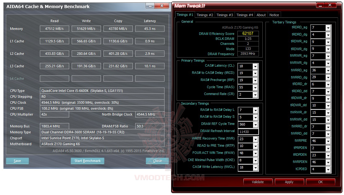 ที่บัส 3600Mhz ค่า Memory Read, Write ก็ทำออกมาได้แรงเยี่ยมครับอยู่ที่ Read 47512MB/s และ Write 51629MB/s