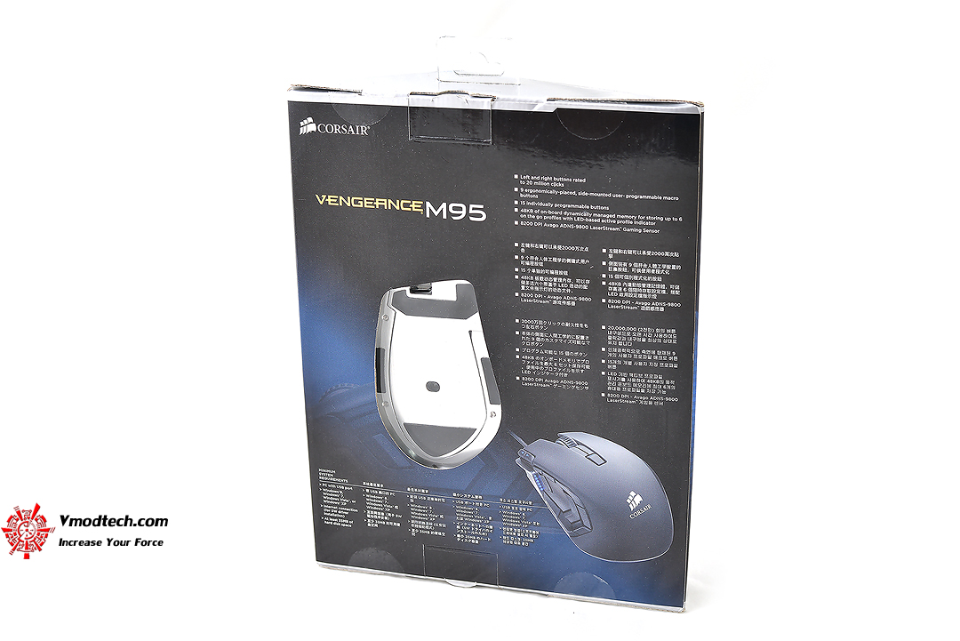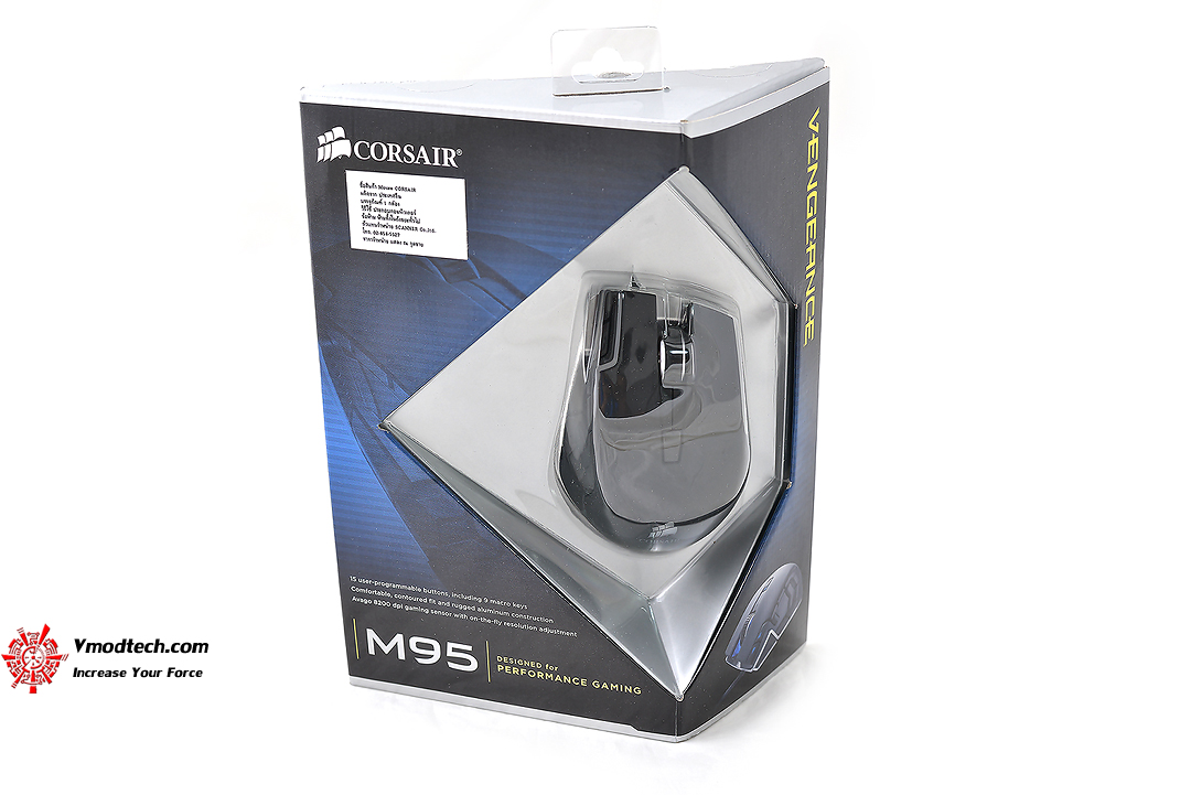 Vengeance M95 Performance MMO and RTS Laser Gaming Mouse นั้นเป็นเมาส์ที่ถูกออกแบบมาสำหรับคอเกมส์ที่ต้องการสมรรถนะในการเล่นเกมส์อย่างสูงสุด ซึ่งแน่นอนว่ามันสามารถตอบสนองได้แทบทุกบทบาทไม่ว่าจะเป็นเกมส์แนว FPS, MMO หรือ RTS ตัวเมาส์ M95 นั้นเป็นเมาส์แบบเลเซอร์ที่มีความละเอียดสูงมากถึง 8200 DPI ที่สามารถแทรกไปยังจุดหมายได้อย่างแม่นยำในทุกสภาพพื้นผิว มีปุ่มอัจฉริยะมากถึง 15 ปุ่มพร้อมทั้งปุ่มมาโครที่สามารถจัดชุดคำสั่งได้ 9 ปุ่ม ตัวถังของเมาส์นั้นออกแบบมาเป็นพิเศษแบบอลูมิเนียม ยูนิบอดี๊ ผสมผสานความแข็งแกร่งและน้ำหนักที่เบาเข้าด้วยกัน