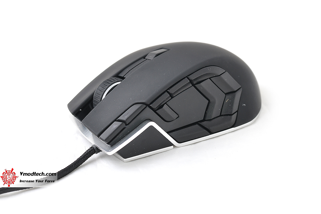 ปุ่มมาโครด้านข้างบริเวณนิ้วโป้งขวามือจำนวน 9 ปุ่มครับ M95 นั้นออกแบบมาให้กระชับกับมือขวามากๆ สังเกตุอลูมืเนียมที่เป็นโครงสร้างหลักนะครับ ไม่เคยเห็นการออกแบบๆนี้บนอุปกรณ์ที่เรียกว่าเมาส์เลย เท่ห์ดีมาก