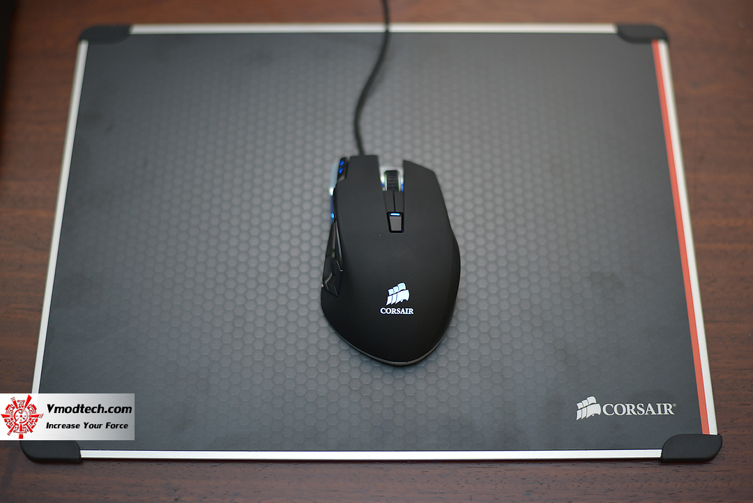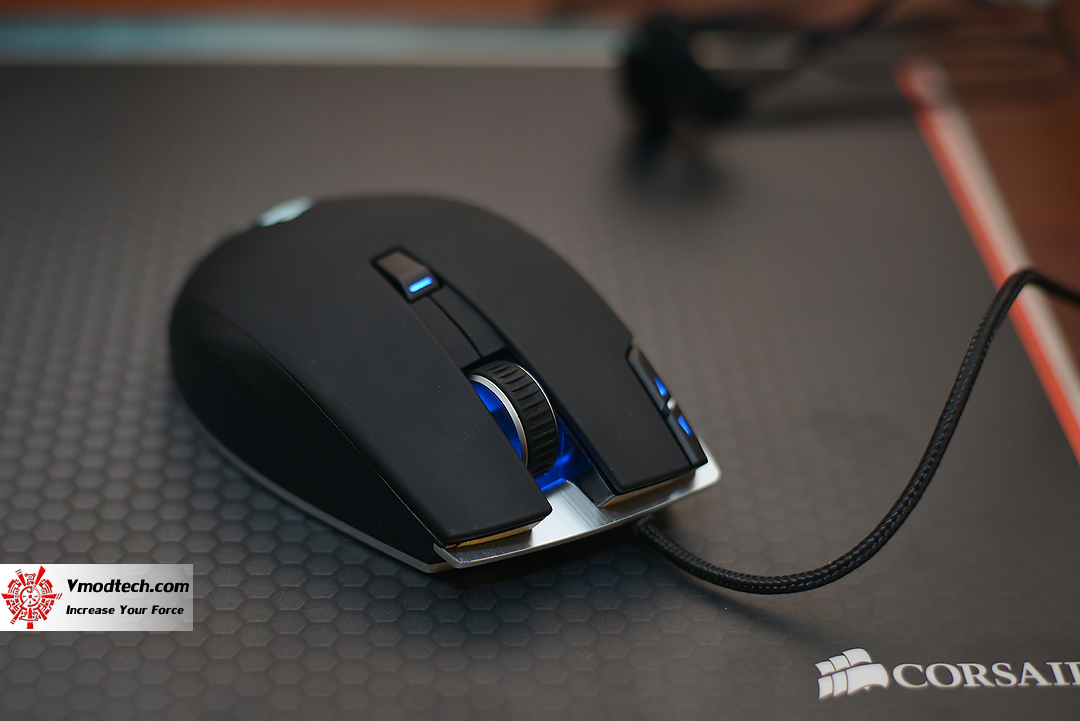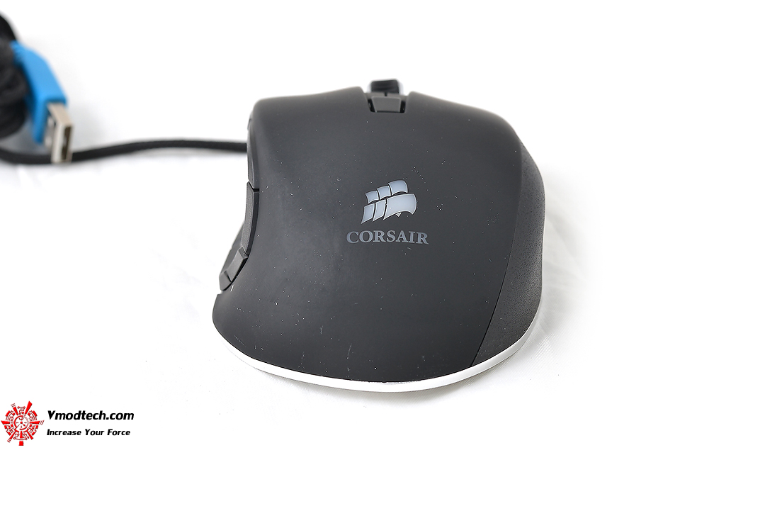 ด้านท้ายเมาส์นั้นก็มีสัญลักษณ์ Corsair ที่เมื่อเสียบใช้งานแล้วจะมีไฟสีฟ้าสวยงามดีครับ