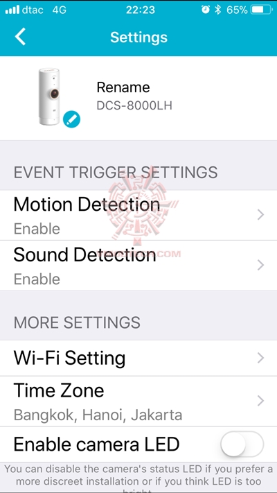 ภายในแอ๊พก็สามารถตรวจสอบรายละเอียดของตัวกล้องได้รวมถึงสามารถเซตค่าต่างๆให้เหมาะสม