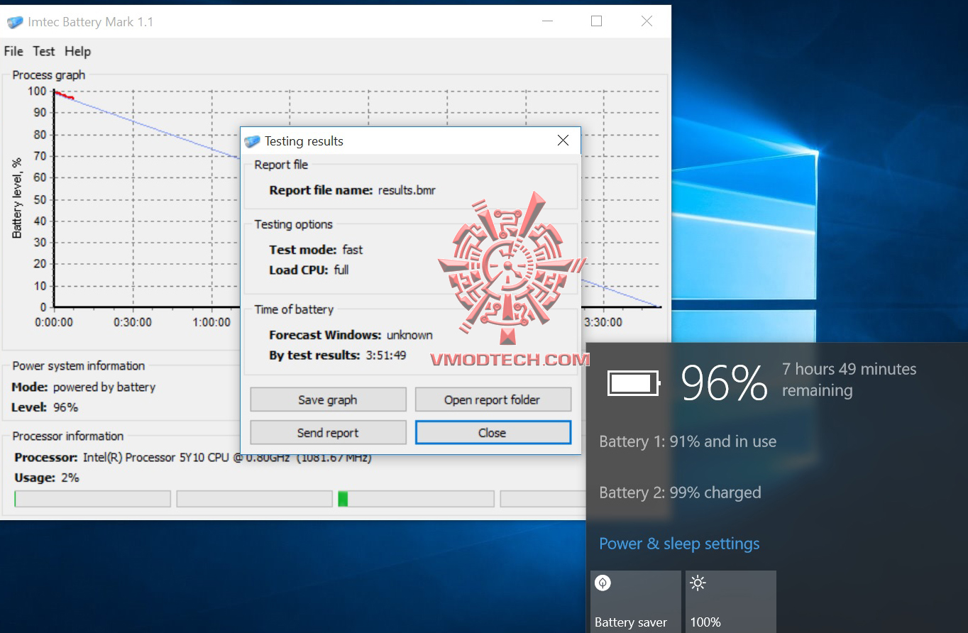 ในส่วนของการทำสอบแบตเตอรรี่ 96เปอร์เซ็นนี่ใช้ได้นาน 7ชั่วโมง 49นาทีกันเลยทีเดียวครับ เพราะในตัวเครื่องนั้นมีแบ็ตเตอรรี่สองชุดทั้งในตัวเครื่องและตัวแท๊บเล็ตนั่นเองครับ