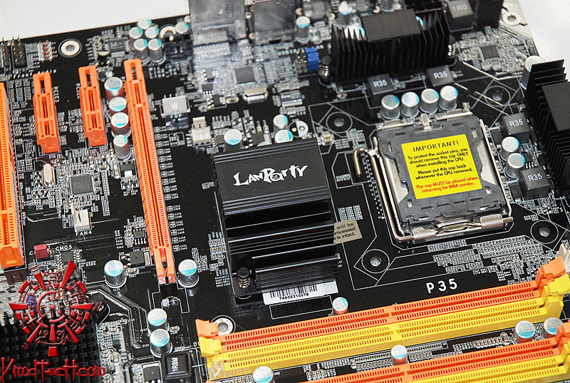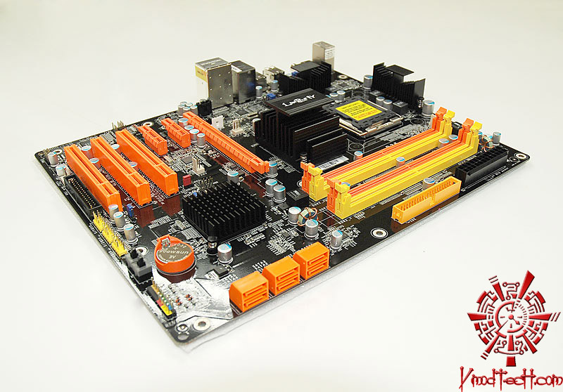 หน้าตาของเมนบอร์ดแบบเต็มๆครับ PCBดำ คาดด้วยสลอตต่างๆสีส้มสลับเหลือง พร้อมซิงค์สีดำด้าน และสวิตซ์PowerและResetพร้อมสรรพบนบอร์ด ไม่ต้องเอาไขควงจิ้มๆแบบBlood Ironแล้วครับ หน้าตาโดยรวมก็สมกับเป็นเมนบอร์ดในตระกูลLANPartyของแท้เลยครับ แต่ราคากลับไม่แพงอย่างที่คิดเลยครับ!!! แค่5,400บาทเองครับ!!! น่าซื้อใช่มั้ยครับ!!! ไปซื้อเลยครับ!!! ยังๆครับ ชมกันต่อไปอีกนิดดีกว่าครับ