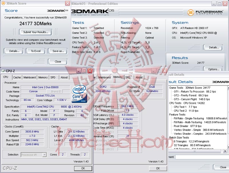 สำหรับ3DMark05 ก็ยังเทสต์ผ่านหมดทุกหัวข้อยันCPUTest ที่ว่าหินๆสำหรับCPU C2D เหมือนกันครับ