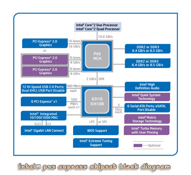 # Intel® chipset - Northbridge: Intel® P45 Express chipset Intel® Fast Memory Access technology - Southbridge: Intel® ICH10R