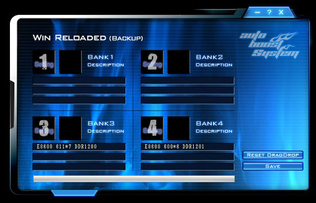 บอร์ดตัวนี้มีซอฟท์แวร์ในการแชร์โปรไฟล์ที่เราปรับแต่งเก็บไว้ใน CMOS Reloaded สามารถเรียกขึ้นมาเป็นback up แล้วเซฟเป็นไฟล์นามสกุล.abs เอาไว้อัพโหลดแบ่งเพื่อนๆที่ใช้sytem เหมือนๆกันได้ลองเอาไปใช้หรือปรับแต่งเพิ่มเติมได้อีกด้วย หรือเราจะเอาของเพื่อนหรือค่าเซทอัพเทพๆของท่านเทพสเตฟรานมาใช้ก็ยังได้นะครับ ^^” แรงแล้วยังแบ่งปันให้เพื่อนแรงได้ด้วย ตัวซอฟแวร์ก็เล่นไม่ยากครับ หน้าตาก็ตามด้านล่างนี้เลย
