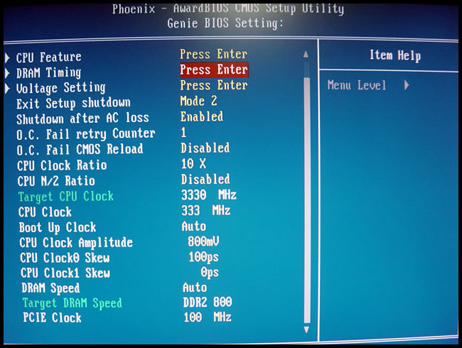 มาถึงเมนูสำหรับการโอเวอคล็อค ในหน้านี้กด Genie Bios Setting เข้ามาจะเจอค่าต่างๆดังรูปนี้เลย จะเอาเท่าไหร่ อยากแรงแค่ไหนสั่งได้จากหน้านี้เลยนะครับ แต่จะเปิดติดรึเปล่ามันเป็นอีกเรื่อง