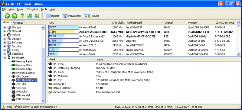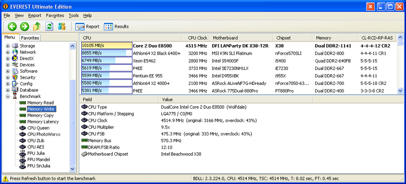 EVEREST Ultimate Edition 2007 Benchmark Results