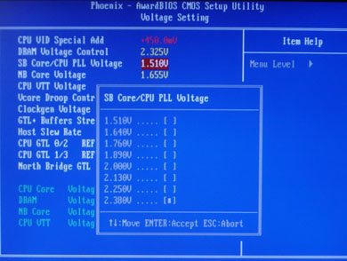 SB Core/CPU PLL Voltage 1.510~2.380V