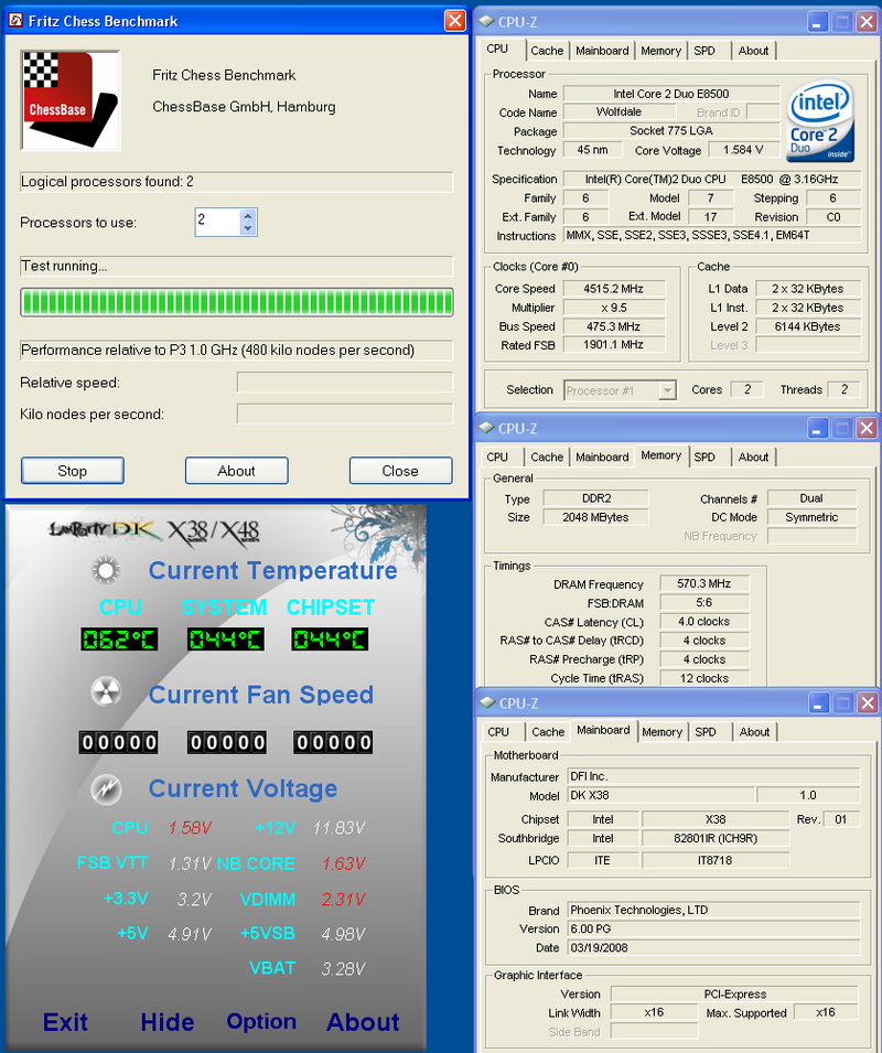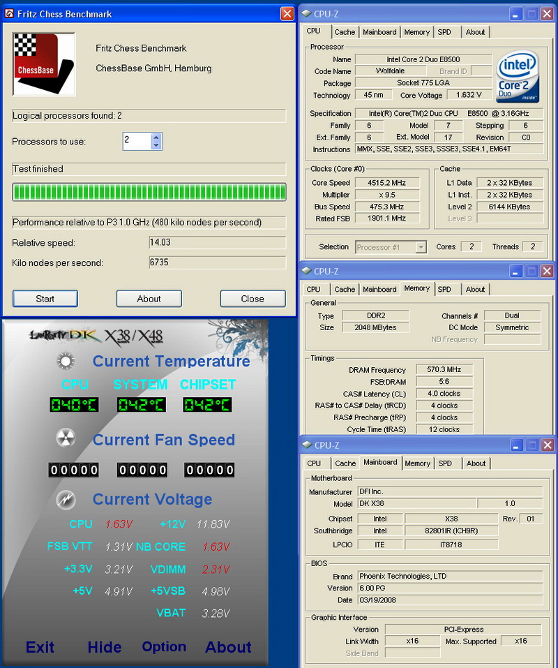และแล้วพระเอกก็เดินควงไปกับกระเทยย..เอ๊ยไม่ใช่..555 มาถึงช่วงสุดท้ายเจ้า DFI LANParty DK X38 T2RB ตัวนี้ มาพร้อมกับหน้าตาสีสันสะท้อนแสงที่สวยงาม เหมาะสำหรับคนแนวๆชอบแต่งเคส ดูจากผลทดสอบก็ถือว่าทำผลงานออกมาได้ดีตามแบบฉบับชิปเซทรุ่นใหญ่ ประสิทธิภาพของมันดูแล้วน่าจะเหมาะกับซีพียูตัวคูณ9ขึ้นไปหรือพวกที่เล่นบัสได้ไม่ไกลเช่น4CORE Q6600 แต่ในเรื่องของการทดแรมให้วิ่งไกลๆใช้ไฟไม่เยอะมากบอร์ดตัวนี้ถนัดนะครับ สามารถทำได้สบายๆตามลิงก์ภาพนี้เลยครับclick อาจเพียงแต่ว่ามันไม่สามารถไปเล่นที่บัสสูงๆกับพวกwolfdaleได้เลย อาจเป็นเพราะผมผู้ทดสอบมือไม่ถึงก็ได้..อิอิ( โทษตัวเองไว้ก่อนไม่คิดจะไปโทษของ) เข้าเรื่องต่อดีกว่า…คงอาจต้องรอการแก้ไขไบออสตัวใหม่ๆออกมาอาจทำให้เล่นบัสกับซีพียูรหัสE8xxxได้ดีกว่านี้ แต่ถ้าผมจะใช้ quad core บอร์ดตัวนี้ก็เป็นหนึ่งในตัวเลือกแรกๆเลยสำหรับผมเลย ส่วนตัวคุณมันอยู่ที่การตัดสินใจของคุณเช่นเคยครับ ขอลาไปก่อน สวัสดีครับ
