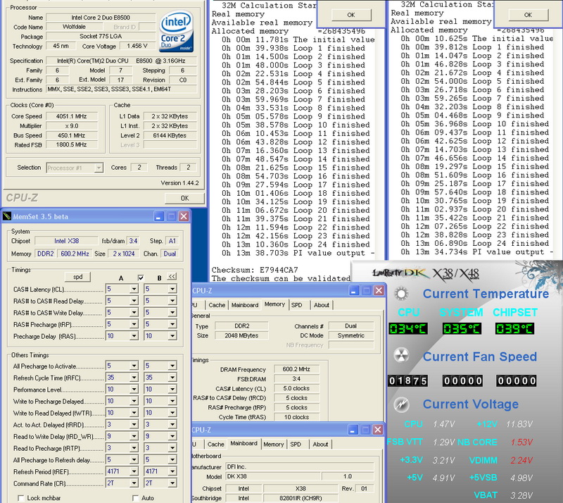 และแล้วพระเอกก็เดินควงไปกับกระเทยย..เอ๊ยไม่ใช่..555 มาถึงช่วงสุดท้ายเจ้า DFI LANParty DK X38 T2RB ตัวนี้ มาพร้อมกับหน้าตาสีสันสะท้อนแสงที่สวยงาม เหมาะสำหรับคนแนวๆชอบแต่งเคส ดูจากผลทดสอบก็ถือว่าทำผลงานออกมาได้ดีตามแบบฉบับชิปเซทรุ่นใหญ่ ประสิทธิภาพของมันดูแล้วน่าจะเหมาะกับซีพียูตัวคูณ9ขึ้นไปหรือพวกที่เล่นบัสได้ไม่ไกลเช่น4CORE Q6600 แต่ในเรื่องของการทดแรมให้วิ่งไกลๆใช้ไฟไม่เยอะมากบอร์ดตัวนี้ถนัดนะครับ สามารถทำได้สบายๆตามลิงก์ภาพนี้เลยครับclick อาจเพียงแต่ว่ามันไม่สามารถไปเล่นที่บัสสูงๆกับพวกwolfdaleได้เลย อาจเป็นเพราะผมผู้ทดสอบมือไม่ถึงก็ได้..อิอิ( โทษตัวเองไว้ก่อนไม่คิดจะไปโทษของ) เข้าเรื่องต่อดีกว่า…คงอาจต้องรอการแก้ไขไบออสตัวใหม่ๆออกมาอาจทำให้เล่นบัสกับซีพียูรหัสE8xxxได้ดีกว่านี้ แต่ถ้าผมจะใช้ quad core บอร์ดตัวนี้ก็เป็นหนึ่งในตัวเลือกแรกๆเลยสำหรับผมเลย ส่วนตัวคุณมันอยู่ที่การตัดสินใจของคุณเช่นเคยครับ ขอลาไปก่อน สวัสดีครับ