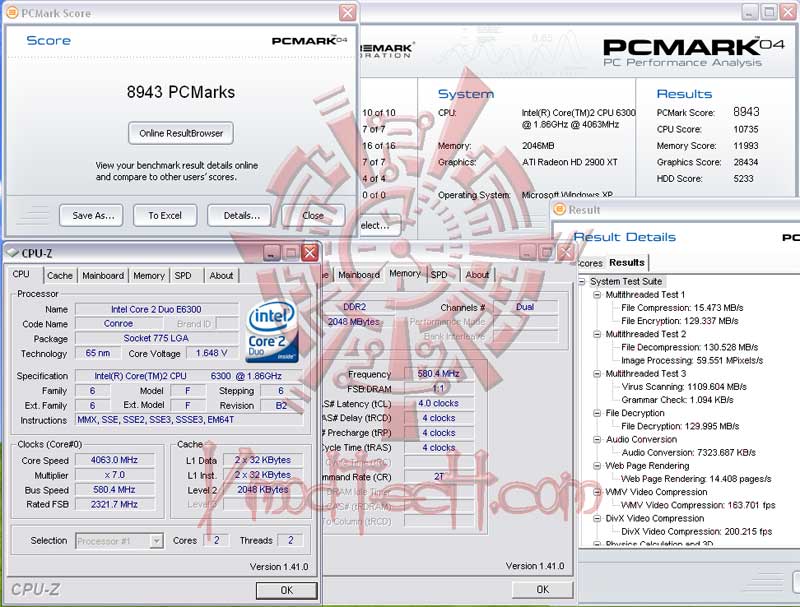 สำหรับPCMark04 ผมใช้ทริกกวนการทำงานขณะเทสต์หัวข้อGrammar Check เพื่อแก้บั๊กหัวข้อนี้กับCPU C2Dนะครับ เลยทำให้คะแนนโดยรวมออกมาได้อย่างที่เห็นครับ