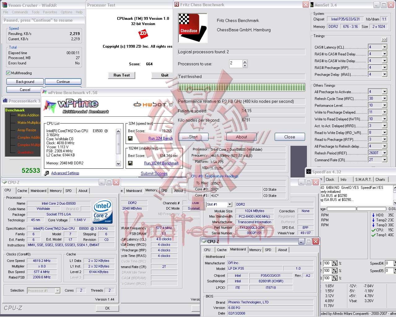 Winrarก็ทะลุ2,200KB/s ไปตามฟอร์มของระบบที่มีFSBสูงๆแบบนี้ครับ ส่วนคะแนนตัวอื่นๆก็ออกมาตามมาตรฐานความแรงทั่วๆไปครับ VCORE1.55V. VDDIM2.20V. มาได้กันขนาดนี้เลยหรือเนี่ย อิอิ