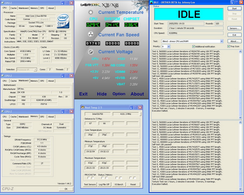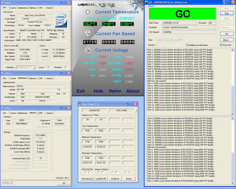 DK X38+E6750@4100MHz FSB512 Orthos PASSED!!!