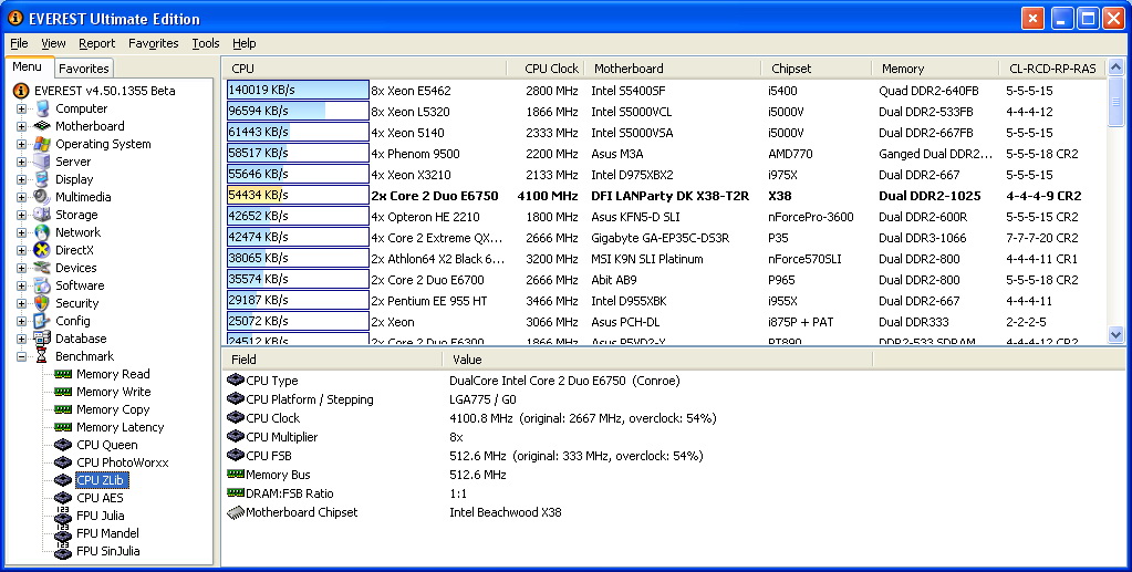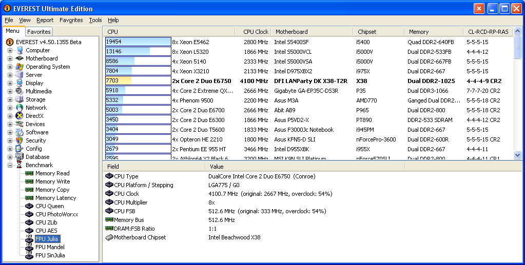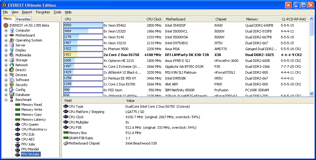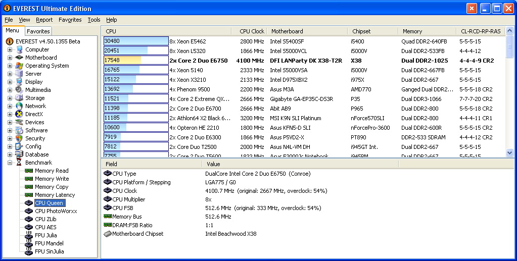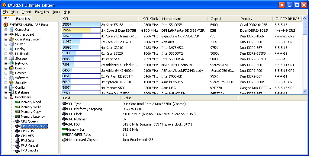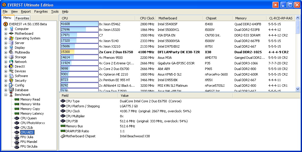 EVEREST Ultimate Edition 2007 Benchmark Results