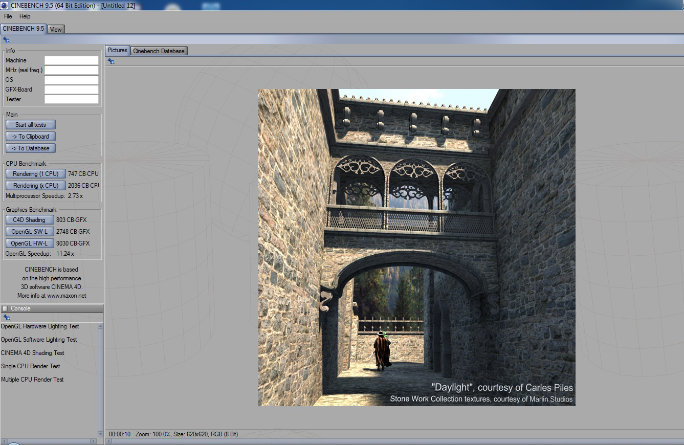 Cinebench R9.5 ใช้เวลาไป 10วินาทีในการเรนเดอร์ทั้ง 4Core ครับ คะแนนซีพียูเรนเดอร์อยู่ที่ 2036 CB-CPU