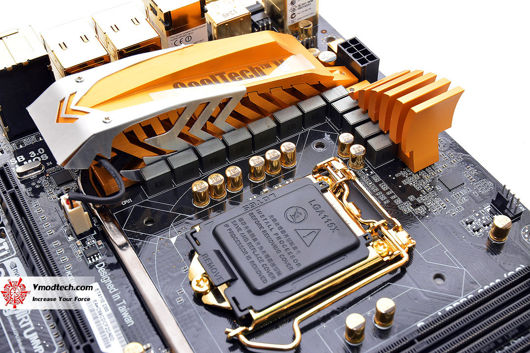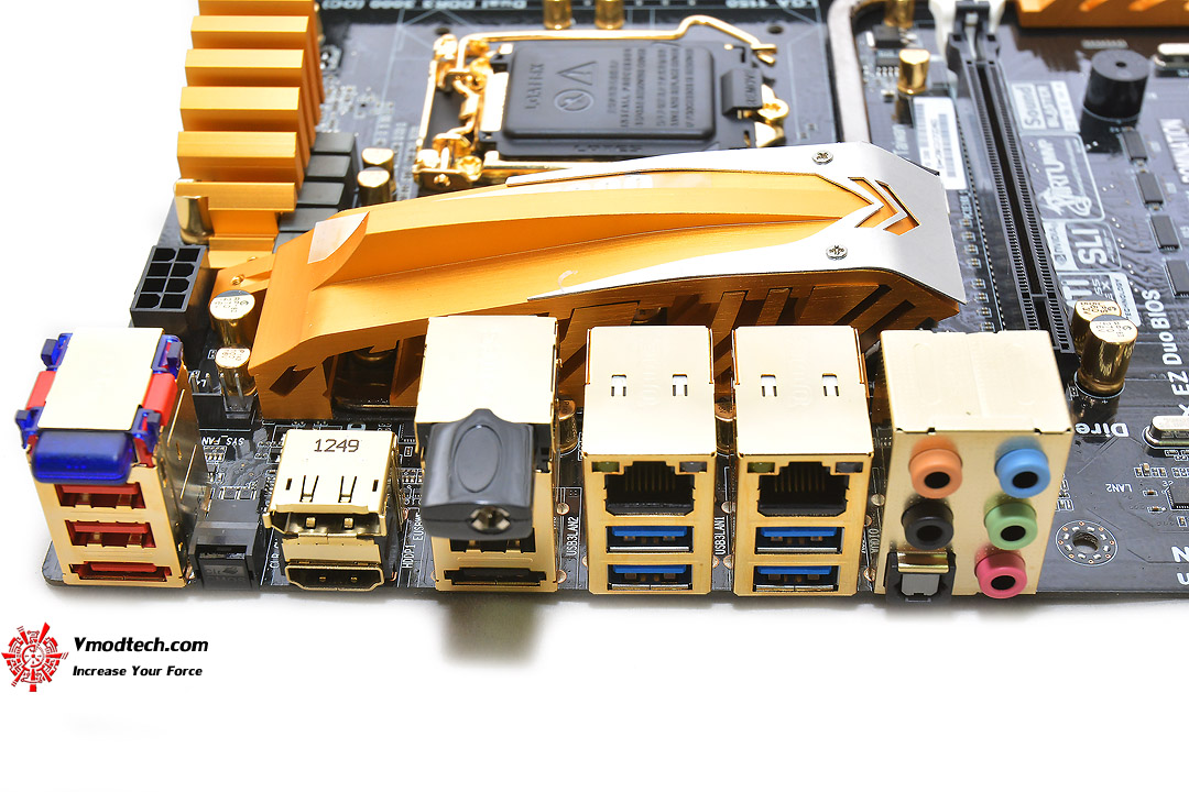 หน้าตาชุดระบายความร้อนให้กับตัวชิปเซต Z87 ที่สวยงามทองแวววาวกลมกลืนกันกับตัวมาเธอร์บอร์ดเป็นอย่างดีครับ