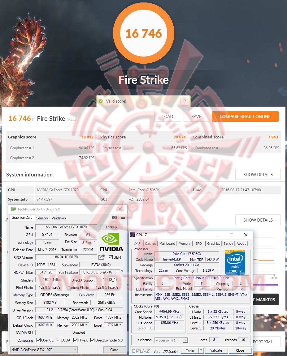 EVGA GeForce GTX 1070 FTW GAMING ACX 3.0 @ 1607/2002/1797 MHz Core/Mem/Boost