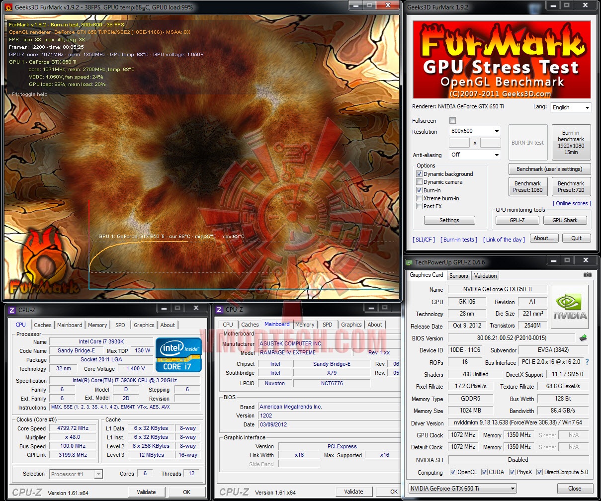 อุณหภูมิของการ์ด . EVGA GeForce GTX 650 Ti SSC ขณะ Furmark นั้นจะอยู่ที่ไม่เกิน 69 องศาครับบนรอบพัดลมทำงานแบบออโต้