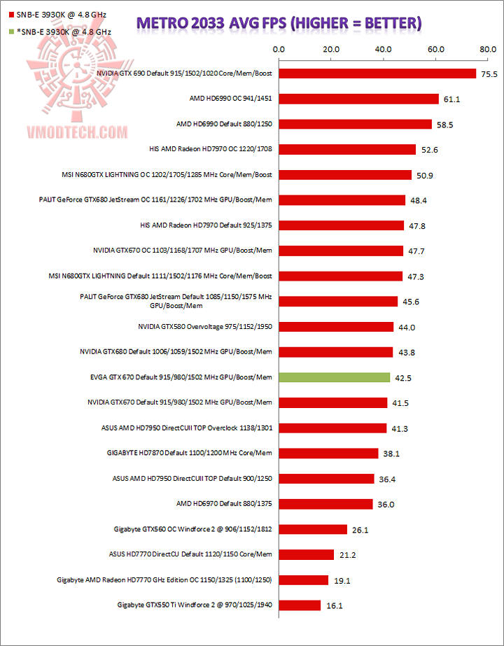 Metro 2033 เล่นได้สบายๆด้วยเฟรมเรทที่ 42.5 แรงกว่า 7950 นิดหน่อยแต่ก็แพ้ 7970 นิดหน่อยเช่นกัน